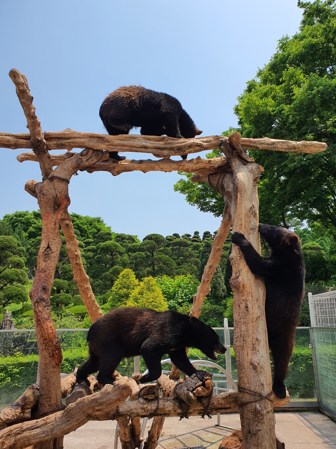 불곰들이 있는 우리는 3곳 있고 건너편에는 반달곰들이 엄청나게 모여있는 우리가 2곳 있습니다.